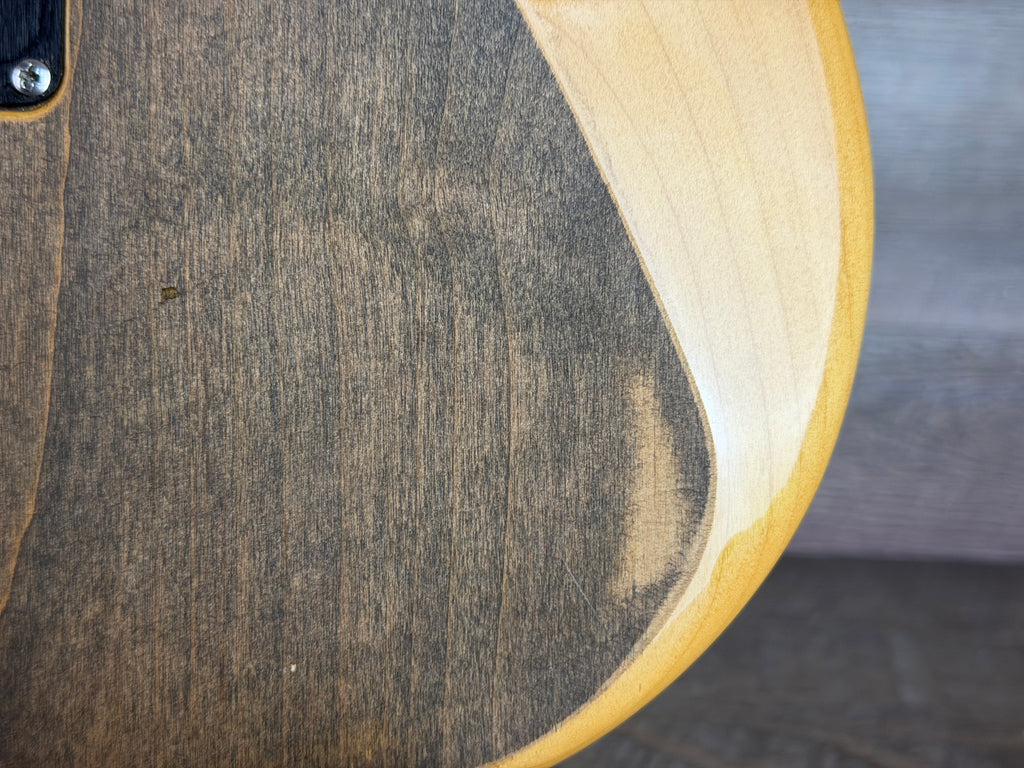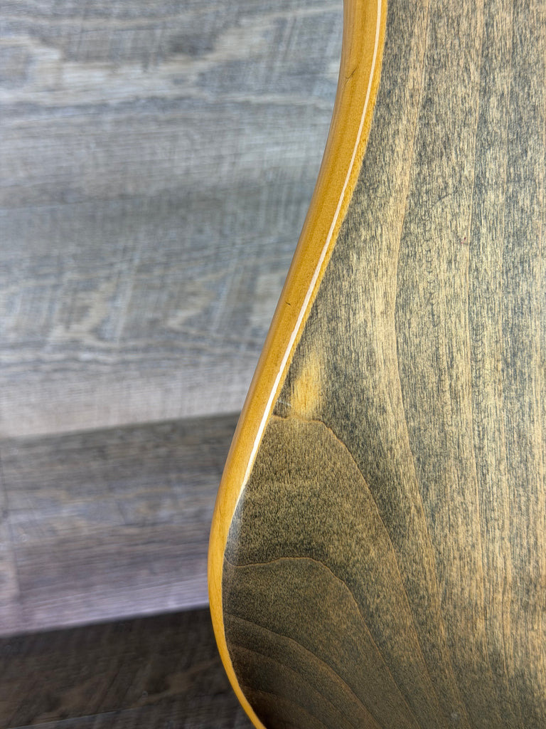 Finish: Original clear coat stripped on top and back, gloss retained on edges and side contours