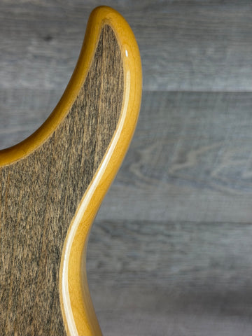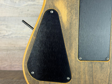 Offered here is a very cool and player-focused 1993 Hamer Diablo, built from an ash body with a maple neck and rosewood fretboard. Hamer produced a number of Diablo variations over the years, and this particular example stands out with its stripped original clear coat on the top and back, while the gloss finish remains along the body edges and side contours. The work was done very well and gives the guitar a unique broken-in look without sacrificing its overall presentation.