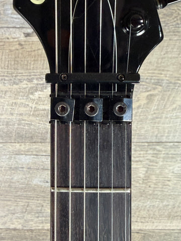 This Diablo has been upgraded from its original pickup set to a powerful EMG 81/85 combination, making it an excellent choice for high-gain rock and metal players while still retaining great clarity and punch. The Floyd Rose tremolo system works exactly as it should, the electronics function perfectly, and the guitar has an outstanding overall setup.