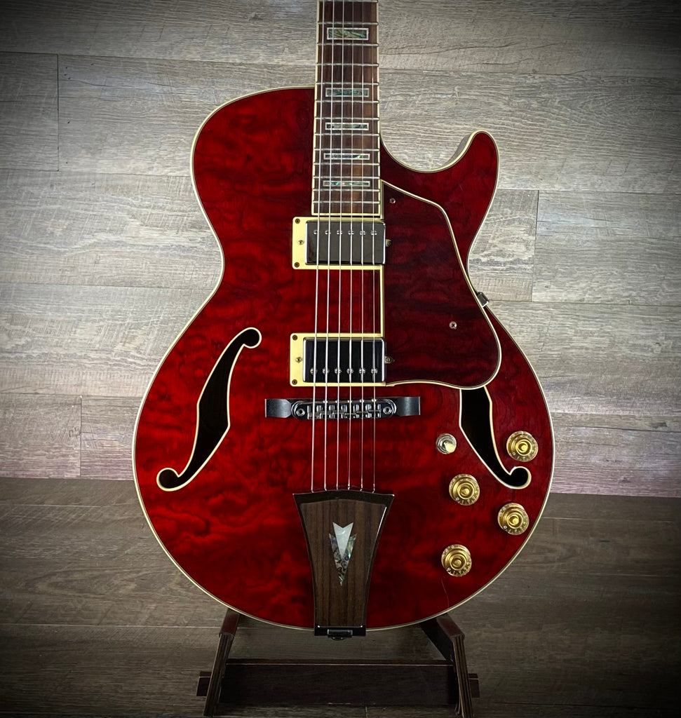 Description: Add some vintage flair and warm, hollowbody resonance to your rig with this Ibanez Artcore AG86-TRD. Dressed in a beautiful Transparent Red finish that showcases the elegant wood grain, this guitar is a fantastic choice for jazz, blues, and rock players looking for that classic "big box" sound in a more comfortable, slightly smaller body size.