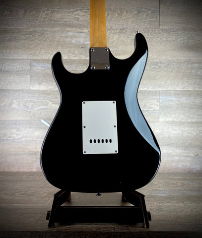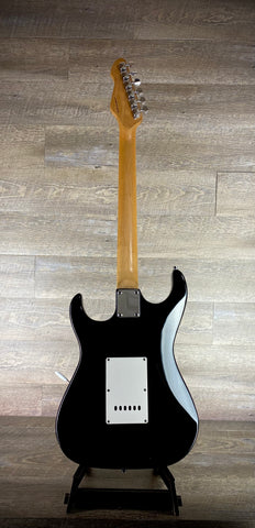 This Peavey Predator is a classic, S-style electric guitar that perfectly balances a vintage aesthetic with modern reliability. Featuring a sleek black finish accented by a crisp white pickguard, this guitar offers a timeless look that fits any stage or studio setting.